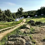 Glamp-Inn Kapolcs se encuentra a tan solo 300 metros de Falumalom Muzeum y ofrece a los huéspedes la posibilidad de practicar senderismo, equitación y ciclismo. Situado a bastante cerca del Village Mill Museum, este camping ofrece Wi-Fi y un aparcamiento.